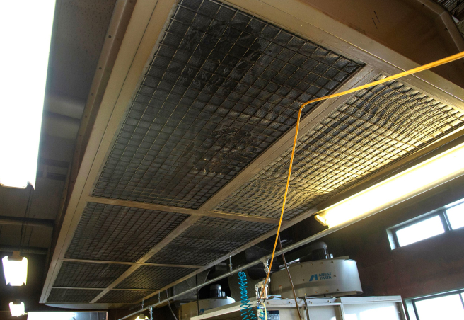強制吸気設備は、新鮮な空気を取り込んでブース内を清潔に保つための装置です。ホコリの混入を防ぎ、安定した塗装環境をつくります。