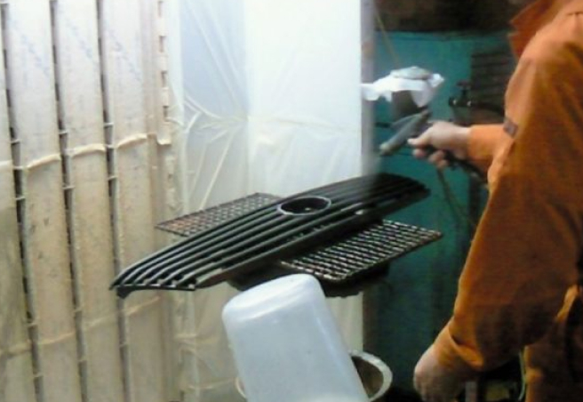 複雑な形状の製品など、繊細な作業が必要な場合は手吹きによるアンダーコート作業を行います。現在では、自動塗装機によるアンダーコートが主となり、手吹き作業ができる職人もかなり少なくなってきています。カネコ真空では、代表の金子を中心に先代から受け継いだ技術を大切に守り、他社では対応不可の製品にも真空蒸着加工を施せる技術を保有しています。