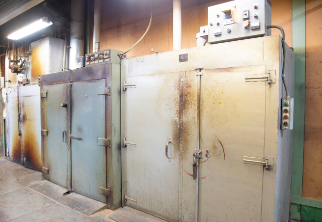 アンダーコートした製品を乾燥炉に入れ、十分に乾燥させます。当社では5台の乾燥炉をご用意しています。最高温度は400度です。