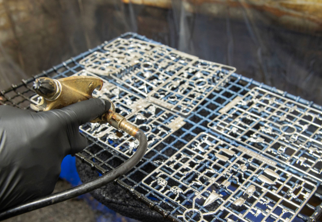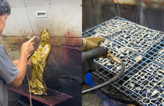 金属感を持たせたインテリア雑貨、ガンプラ・フィギュアなどの模型パーツ、トロフィーなどの記念品、CM撮影・舞台用小道具、神社仏閣の装飾金具など、美観と高級感を重視する製品に広く使用されています。カラーリングやパール、艶消しなどと組み合わせることにより、より装飾性に富んだコーティングが可能で、鏡のような美しい光沢から多彩な色調表現まで対応できます。