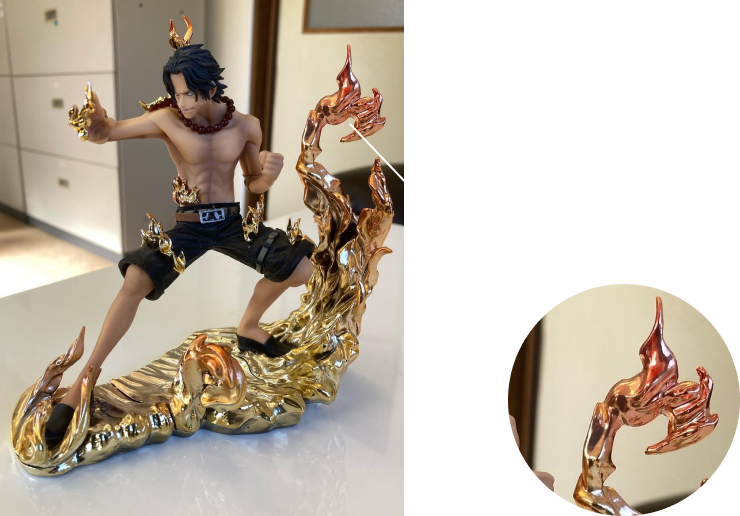 自動車リフレクターの再メッキ、ガンプラ・フィギュアの装飾、照明器具・インテリア部品、神社仏閣の装飾具、CM撮影・舞台用小道具、産業用部品など創業以来、300社以上の企業様との取引実績があります。